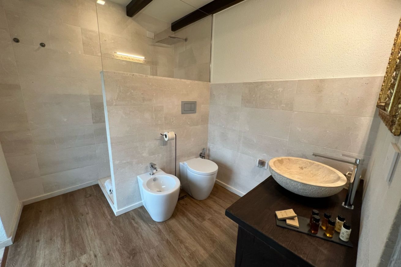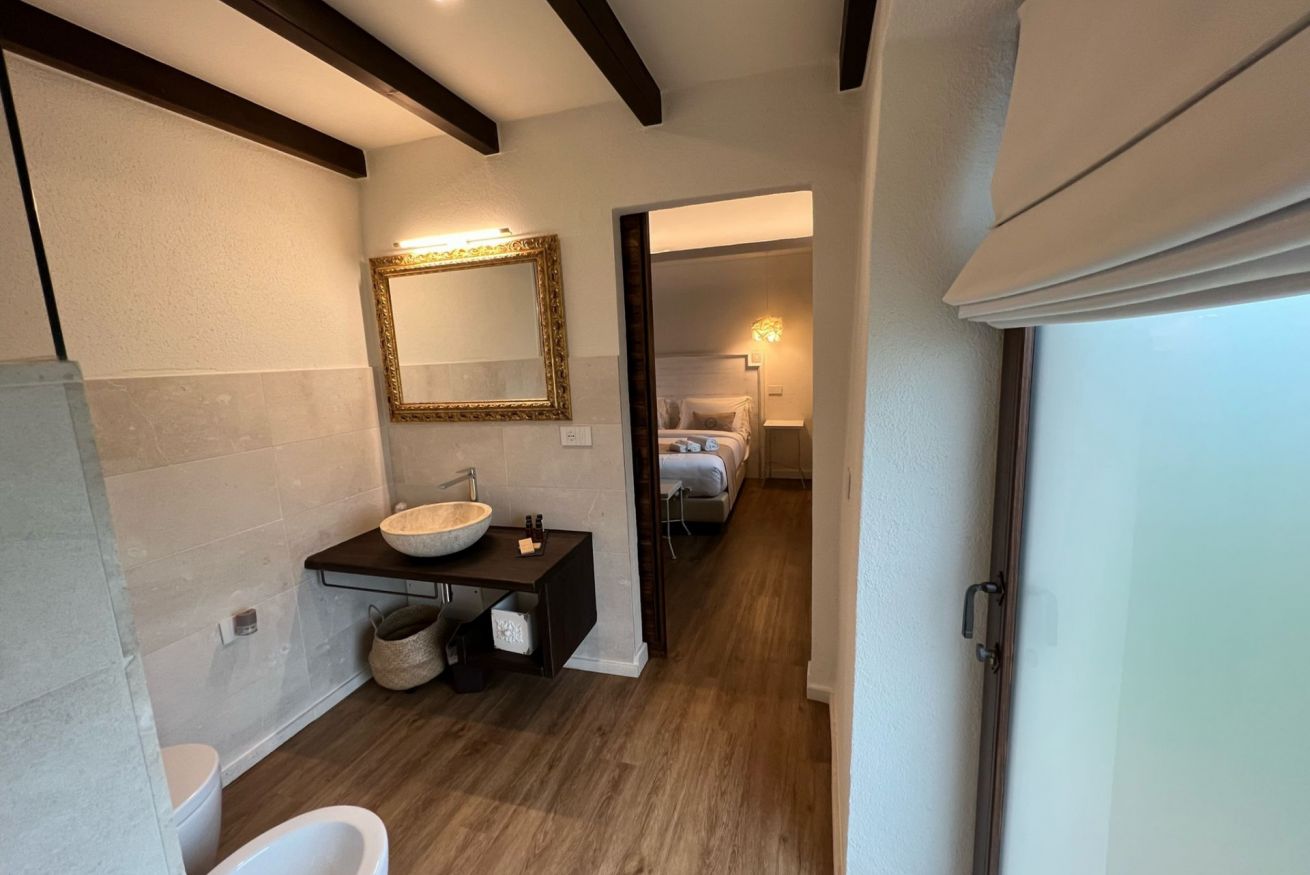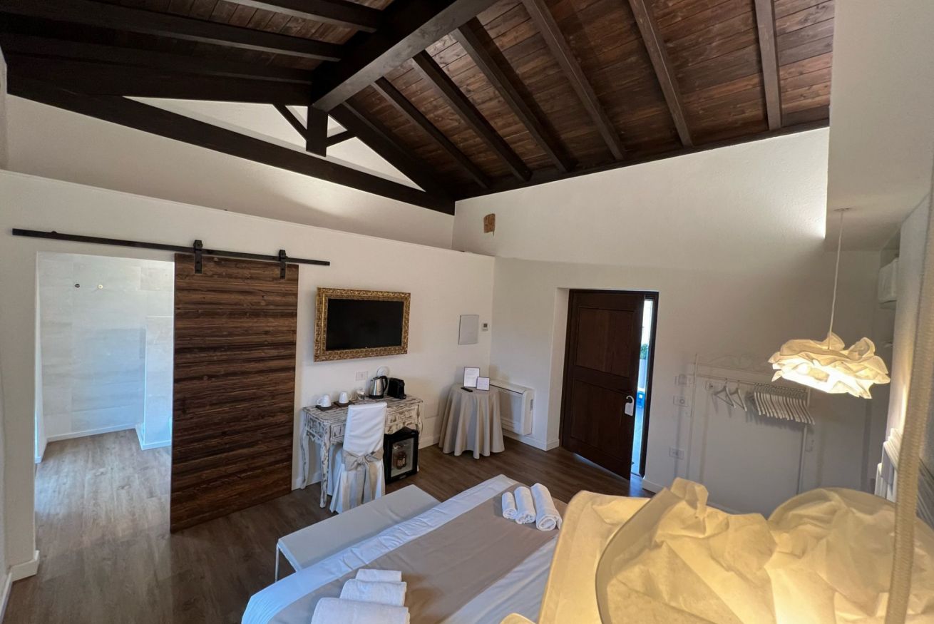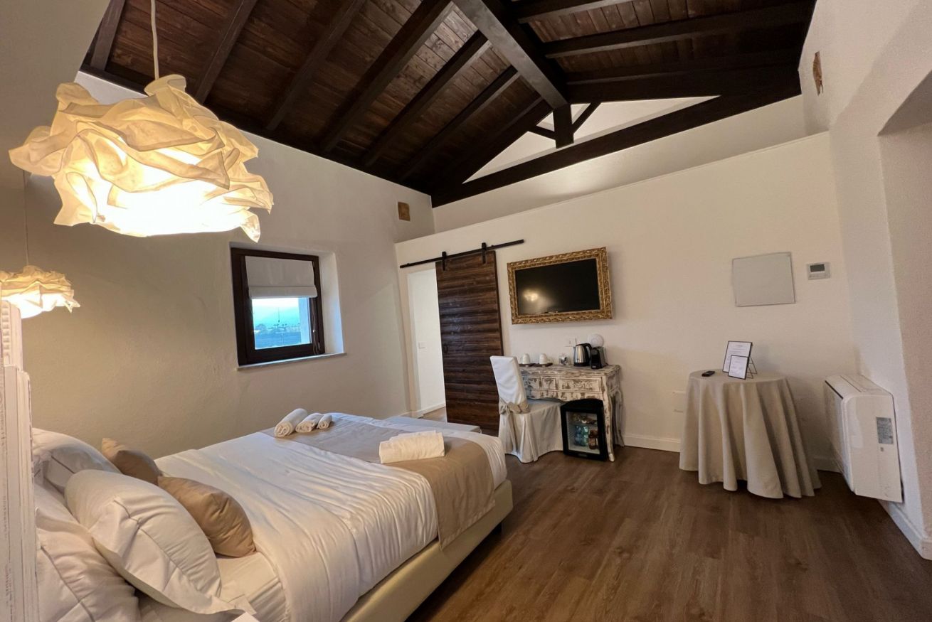 Camera Standard vista giardino con letto matrimoniale King Size e servizi. La camera è disponibile anche con letti separati.